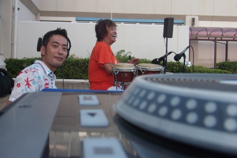 そして、先週ご依頼を受けた中でも仕事ということを忘れて楽しませて貰ったのが海軍基地内でのサルサ・パーティー。日本を代表するジャズ・パーカッショニストの横山達治さんを迎え、プールサイドにてDJ とパーカッションのセッションを行いました。皆さんカクテルやお食事を楽しみながら最後の夏を満喫しているようでした。
