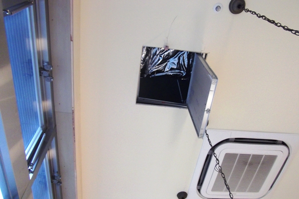 お世話になっているB社が4月からカフェをオープンすると言うので、その音響環境をプロデュースさせていただくことになりお邪魔しました。現地はまだ工事中でお店の内装も未完成の中、購入した機材を取り付けるための基盤を作るために3メートルほどの高さに位置する天井裏へ侵入。中は1m 四方位の狭さで体をねじ込むのがやっと。はしごもギリギリしか届かない危険な状況で、軽量鉄骨にネジを打ち込み1か所を20分くらいで作業終了。